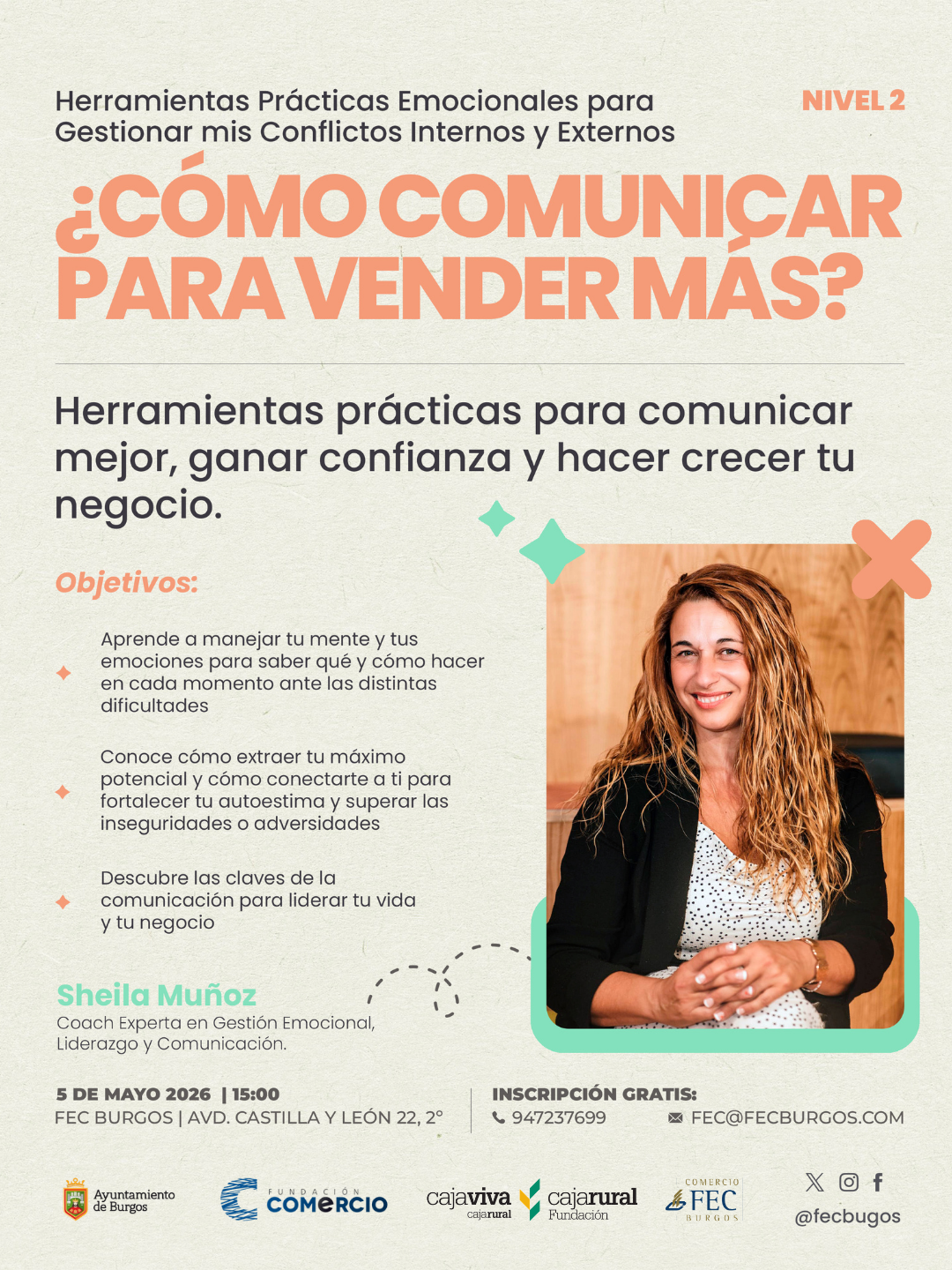Tras el éxito de la primera sesión, la Federación de Empresarios de Comercio de Burgos te invita a continuar este ciclo formativo «¿Cómo comunicar para vender más?» con la segunda jornada práctica, donde profundizaremos en herramientas clave para conectar mejor con tus clientes y mejorar tus resultados.
