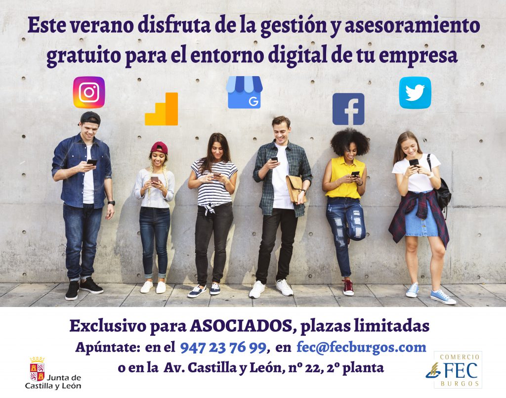 Desde la Federación de Empresarios de Comercio de Burgos se continúa con la apuesta por el comercio local, también en vacaciones. Durante la estación estival los asociados podrán disfrutar de un servicio exclusivo e individualizado de gestión y asesoramiento gratuito del entorno digital.
